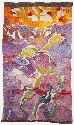 Ilse Abka-Prandstetter 07: "Gelber Himmel" Wandteppich Wolle und Garne, 186cm x 107 cm 1981