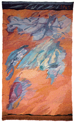 Ilse Abka-Prandstetter 13: "Aus Luft und Wolle (Rot)" Wandteppich Wolle und Garne, 263cm x 153cm 1990
